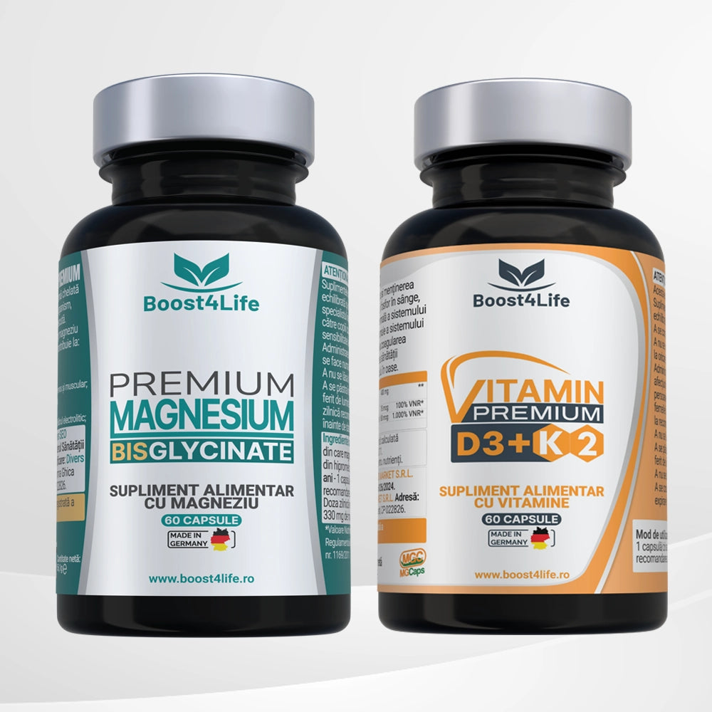 Vitamin Premium D3+K2 de la Boost4Life este un supliment alimentar care combină vitamina D3 și vitamina K2, esențiale pentru sănătatea oaselor, a sistemului imunitar și a sănătății cardiovasculare. Această combinație ajută la maximizarea absorbției calciului în oase și previne depunerile de calciu în artere, contribuind astfel la menținerea sănătății generale.